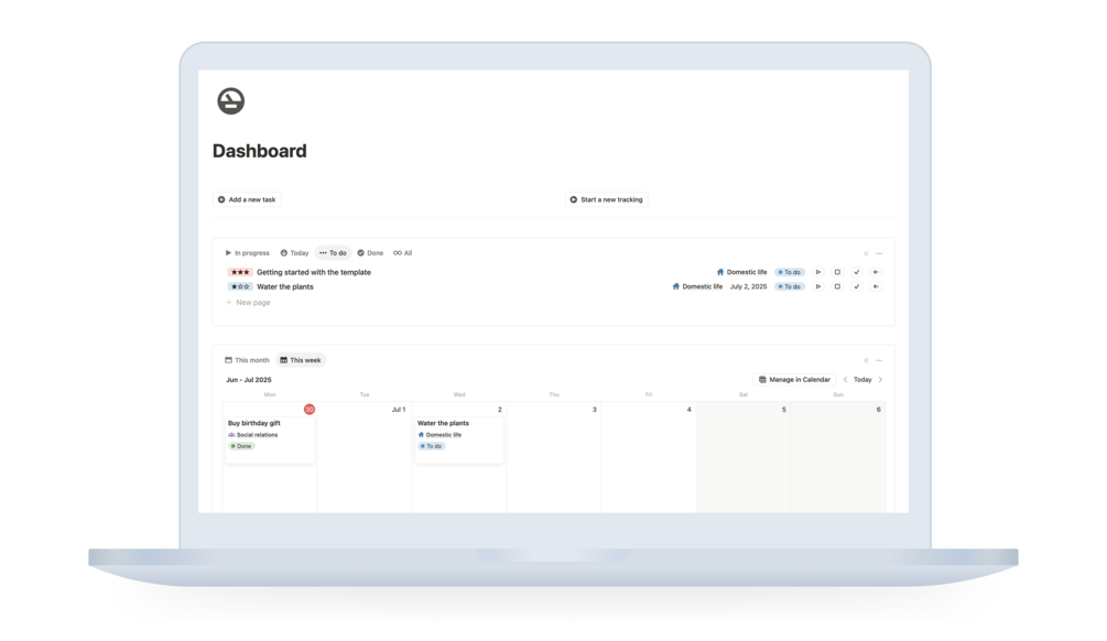 πŸ‘‰ Optimised dashboard that centralises all your tasks, to better visualise where you are in your to-do list.
